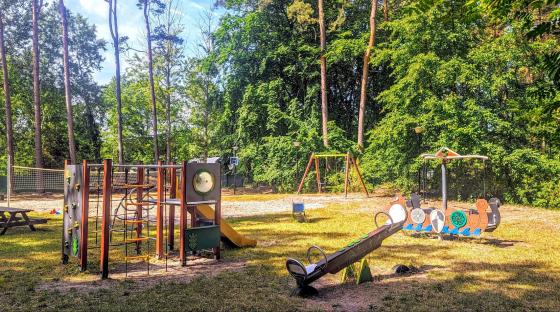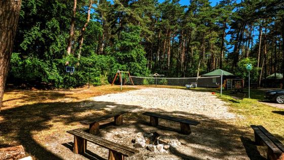 Obiekt jest ogrodzony, a na miejscu znajduje się boisko do siatkówki plażowej, plac zabaw dla dzieci oraz miejsce na ognisko.