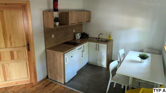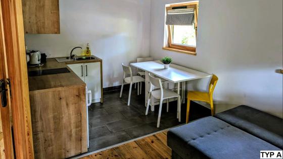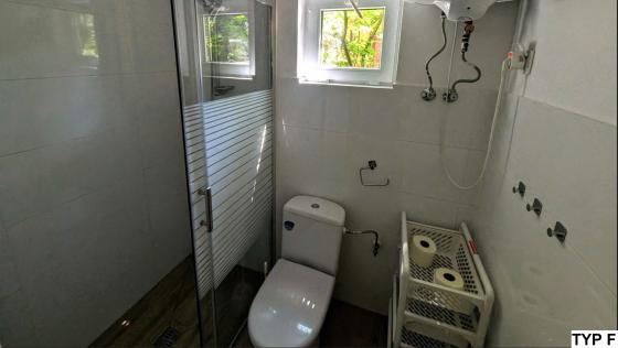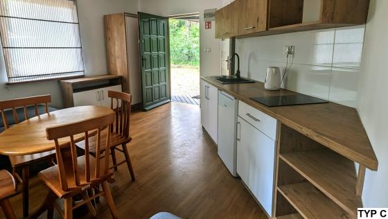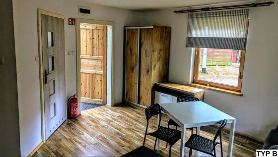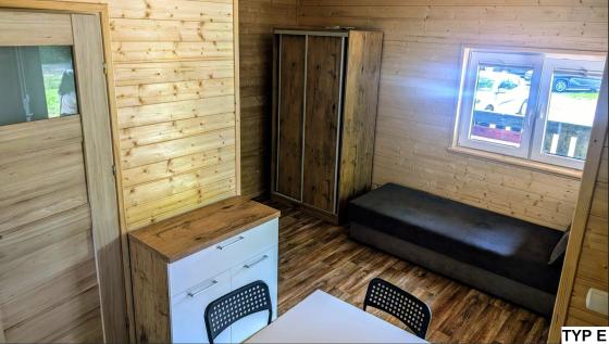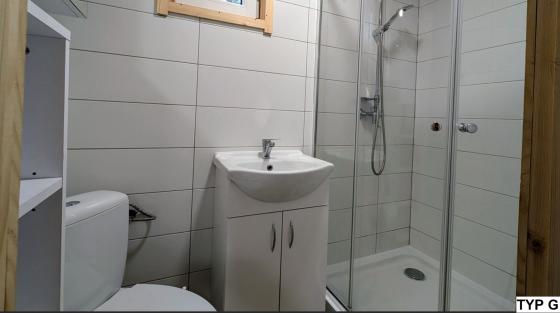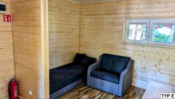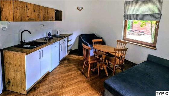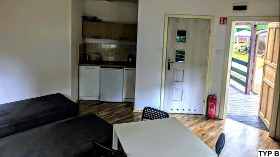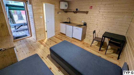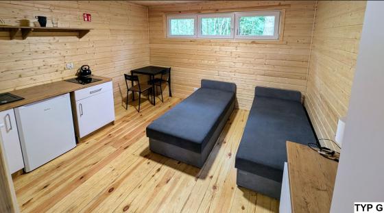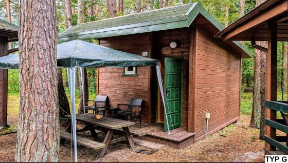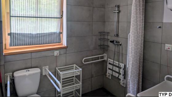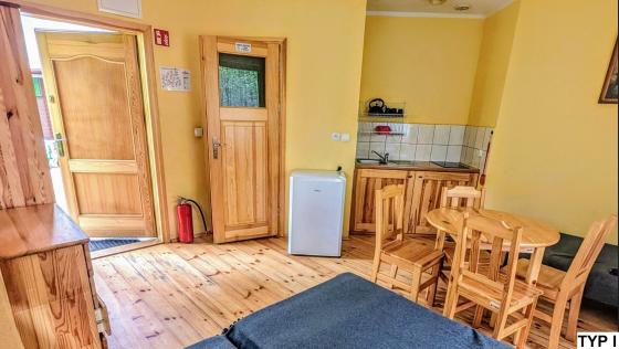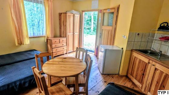 Jeden pojedynczy domek 4 osobowy przystosowany jest dla osób poruszających się na wózku inwalidzkim.